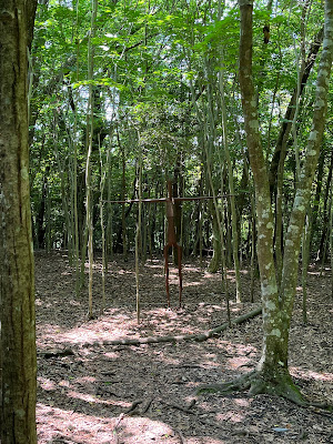 樹林ゾーンでは地図を片手に作品を探しながら歩く。ちょっとオリエンテーリング気分。木々の間から忽然と現れる作品にはタイトルだけで説明はなく、見る者の想像に任せられる。(いちおう解説の小冊子も用意されているが、それは後で作品を思い出しながら読んだほうがいい。)人によるかもしれないが、自然環境の中で見るアートは、その意味を考えるより先に風景として捉える。個々の作品の好き嫌いは置いても、風景として調和しているか、していないかの第一印象はとても重要なものだと思う。霧島アートの森の作品は、ほとんどがそこに上手に存在していた。